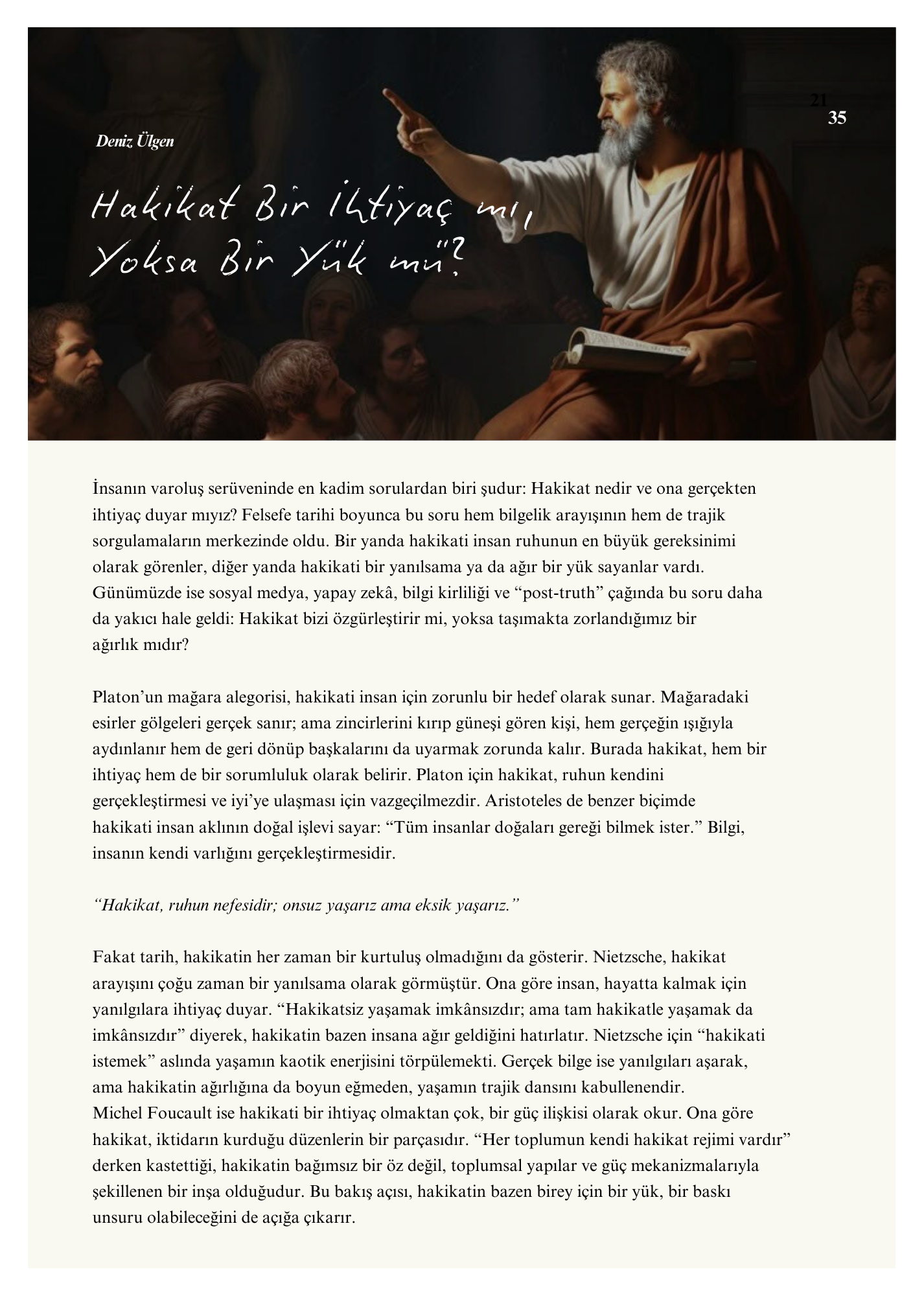 Bu sayı, sadece felsefeyle ilgilenenlere değil; zihnini berraklaştırmak, duygularını yönetmek ve yaşamın karmaşasında sağlam bir duruş geliştirmek isteyen herkese hitap ediyor.